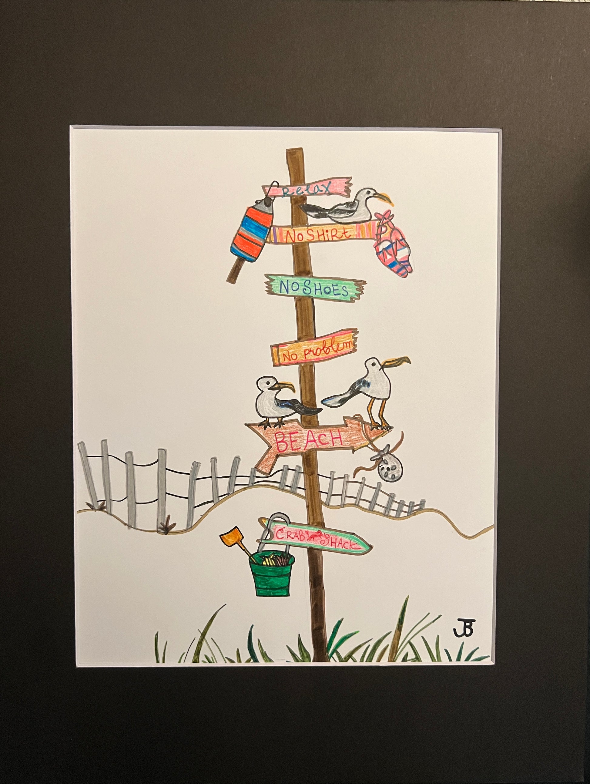 Beach Days, mixed media on cardstock, matted to 11x14, and ready to frame!