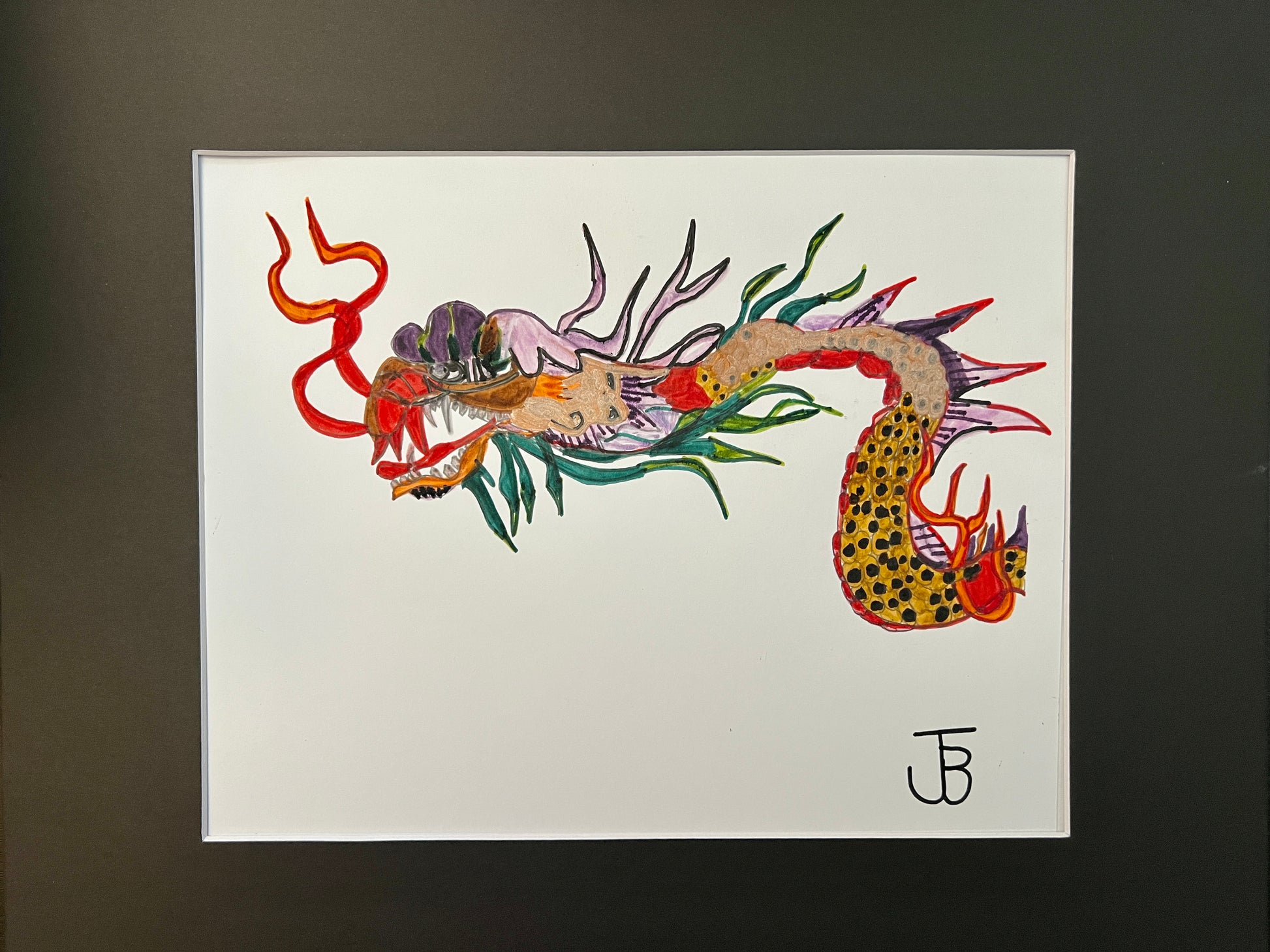 Dragonhead, ink on cardstock, matted in black to 11x14.